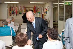 広島赤十字・原爆病院で入院患者のお見舞いをする天野IAEA事務局長