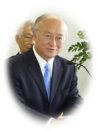 上の写真は,覚書署名後,握手を交わす天野IAEA事務局長(右から2番目),